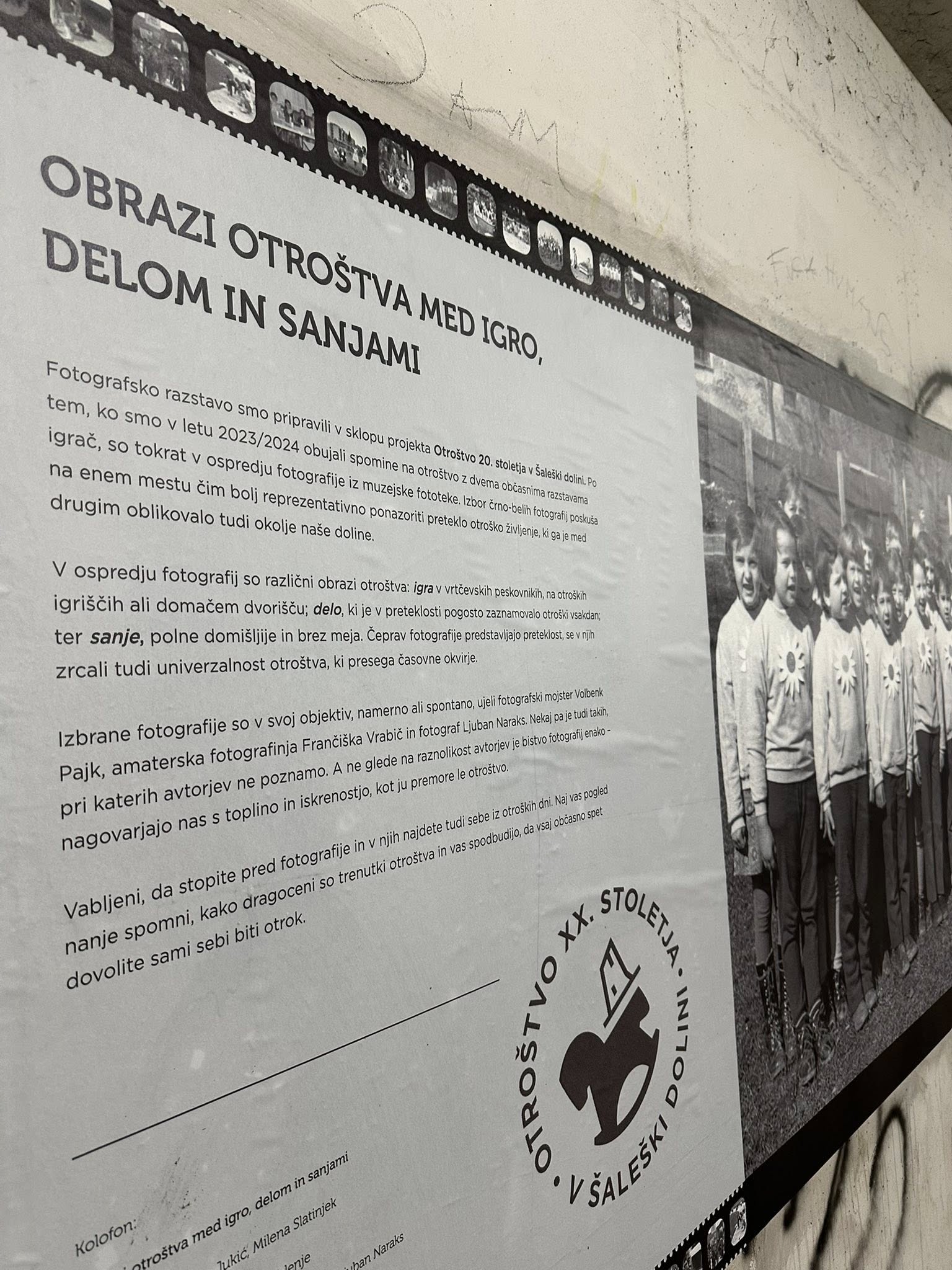 Razstava Obrazi otroštva med igro, delom in sanjami na ogled postavlja fotografije iz fototeke Muzeja Velenje, med katerimi izstopata avtorja Frančiška Vrabič in Volbenk Pajk. Avtorici razstave sta Andželina Jukić in Milena Slatinjek, nastala pa je v okviru večletnega projekta Otroštvo 20. stoletja v Šaleški dolini.