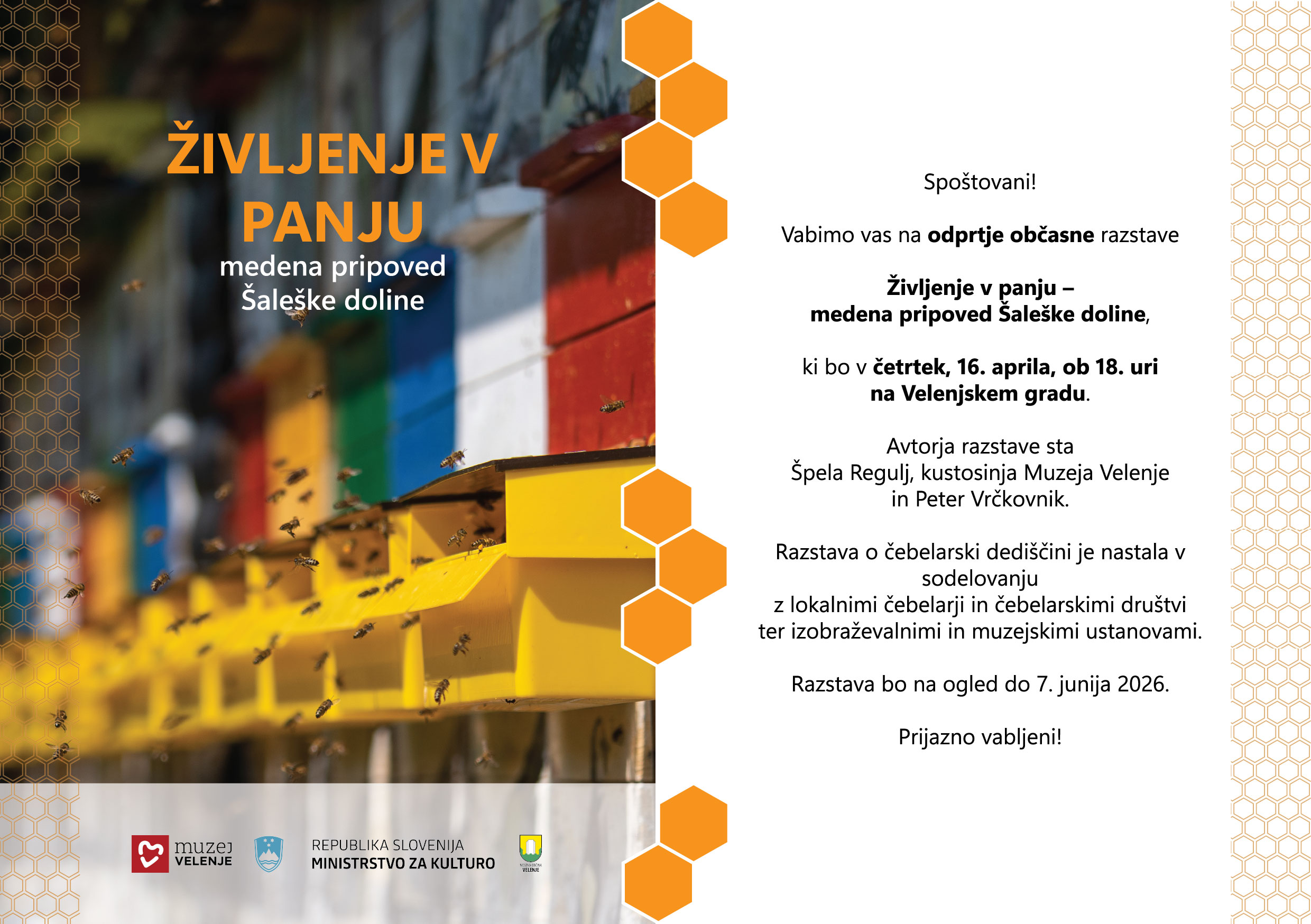 Razstava odstira pogled v svet čebel in čebelarstva, ki ima v Šaleški dolini dolgoletno tradicijo. Na ogled bodo fotografsko gradivo ter predmeti iz zbirk Muzeja Velenje in lokalnih čebelarskih društev. V treh prostorih Velenjskega gradu bodo predstavljene lokalne in širše slovenske čebelarske posebnosti, med njimi panjske končnice, panji, točila, čebela kranjska sivka in drugi predmeti. Ob tem bomo spoznavali marljivo delo čebelarjev skozi čas, sodobne izzive ter pomen čebelarstva za prihodnje generacije.